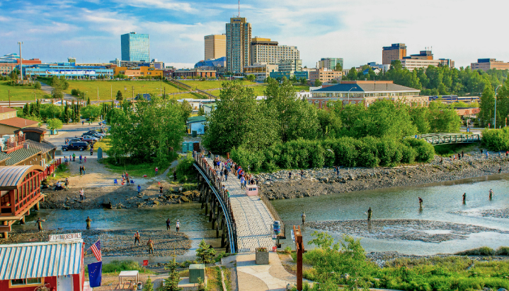 In most cities, a creek running through downtown is a sad afterthought. In Anchorage, Ship Creek fills with thousands of salmon every summer—king salmon in May and June, silvers from July through September—and you can watch them fight upstream from viewing platforms a ten-minute walk from the hotel district. The fish ladders and spillway at the William Jack Hernandez Sport Fish Hatchery give you close-up views of salmon in their final, desperate push to spawn. Better yet, you can fish: Ship Creek is one of the best urban salmon fishing spots in America, and you can rent gear on-site if you didn't bring your own. The Alaska Railroad rumbles past on schedule. Eagles circle overhead. The whole scene feels impossibly Alaskan, and it's hiding in plain sight downtown.