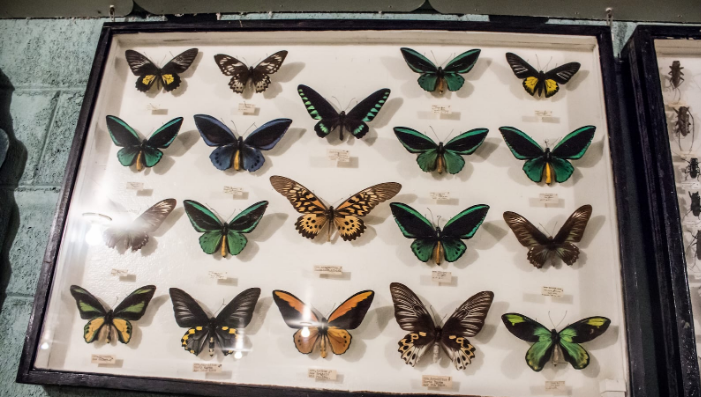 World-class bug museum with nearly 8,000 exotic insect specimens from James May's collection. Giant roadside beetle marks the location. Housed in what looks like an RV park, it belies its world-class quality with kitschy exterior. Features rare specimens from around the globe including massive tropical beetles and butterflies.