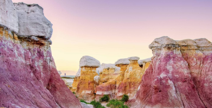 750 acres of colorful hoodoos, spires, and selenite clay formations in whites, golds, reds, and purples. Iron oxide-colored clay deposits were used by Native Americans to create paint. 45 minutes east of Colorado Springs in rural El Paso County. Even lifelong Colorado natives haven't heard of it. No climbing allowed to protect formations.