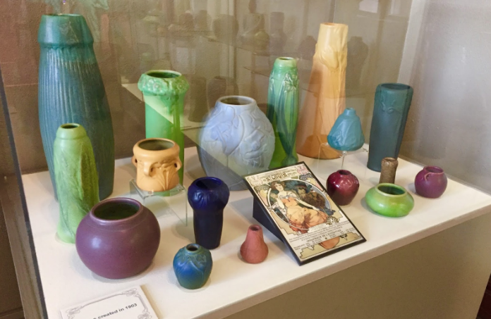 1908 building with 5,000+ tile and terra cotta components — one of the most important tile installations in the United States. Original Van Briggle pottery factory operated 1908-1968. Now houses Colorado College Facilities Services. Pottery festival tours available. Features Art Nouveau designs in distinctive matte glazes.