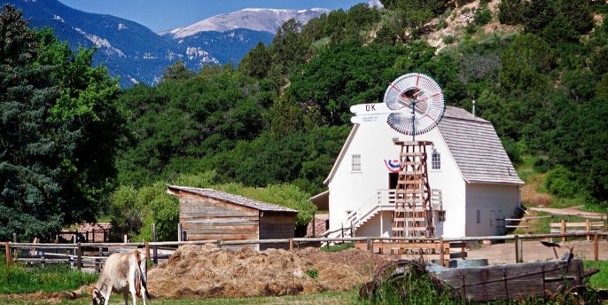 National Register site depicting four time periods: 1775 American Indian camp, 1860s homestead, 1880s ranch, and 1907 Edwardian estate. "Half-hidden among evergreens" adjacent to Garden of the Gods, most visitors miss it entirely. Living history interpreters demonstrate period-appropriate activities. Donated by General William Jackson Palmer.