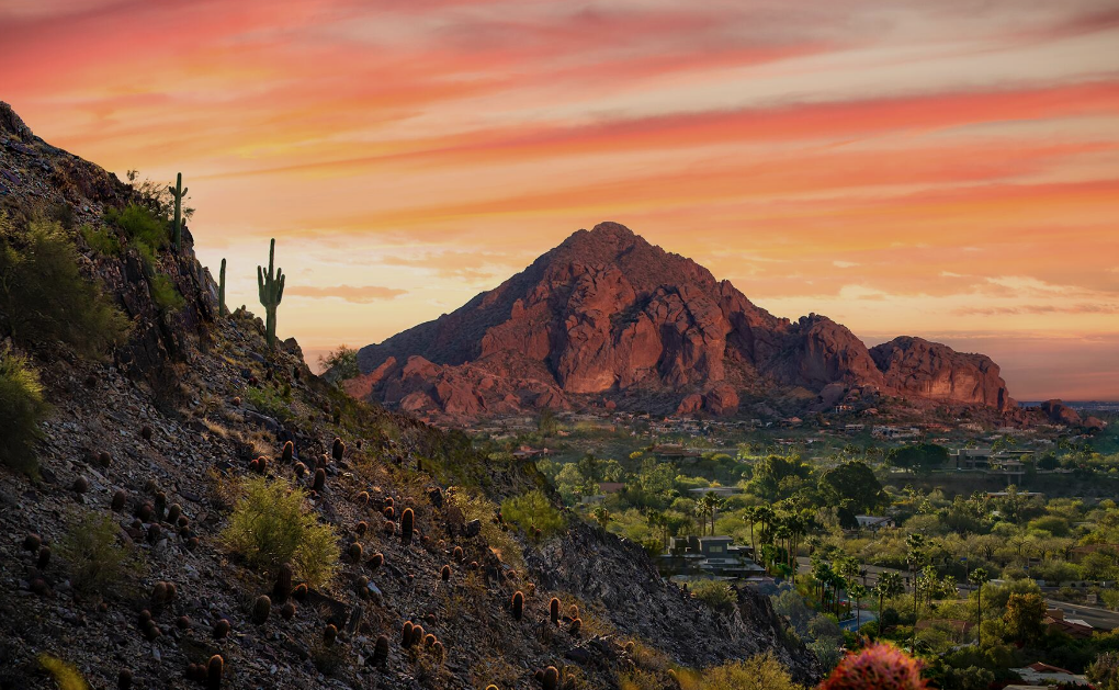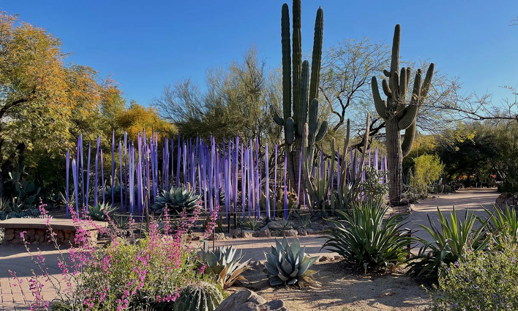 Founded by the Arizona Cactus and Native Flora Society in 1937, established at this site in 1939. 140 acres total, 55 acres under cultivation. Over 50,000 displays of desert plants. Iconic saguaro cacti everywhere. The Harriet K. Maxwell Desert Wildflower Loop Trail—third of a mile, best for birds, bees, butterflies. The Maxine & Jonathan Marshall Butterfly Pavilion houses thousands of butterflies in 3,200 square feet. Evening flashlight tours. Best visited sunrise or after dark when the desert actually comes alive and temperatures allow human survival.