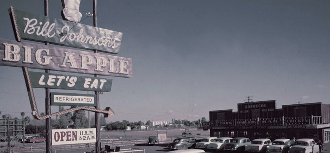 Bill Johnson himself was a walking Arizona legend—radio host, actor, stuntman, hypnotist—and his restaurant matched the personality. The "Let's Eat" neon sign glowed on Van Buren for 59 years. Johnny Cash ate there. Wayne Newton ate there. Generations of Phoenix families celebrated birthdays over chuckwagon food that never tried to be anything other than what it was. On the last day in 2015, people waited 90 minutes just to say goodbye. The building is now a parking lot. The neon sign is probably in a collector's garage.
