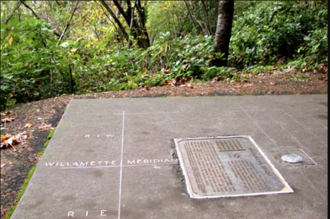 On June 4, 1851, Surveyor General John B. Preston hammered a red cedar stake into this hillside and declared it the origin point for every land survey in Oregon and Washington. Every property line, every section, every township—measured from this spot. The wooden stake became a stone obelisk in 1885. Vandals damaged it in 1951, 1967, and 1987. A stainless steel marker was installed in 1988. Now it sits in a tiny state park off Skyline Boulevard that most Portlanders drive past without knowing it anchors the entire regional grid system.